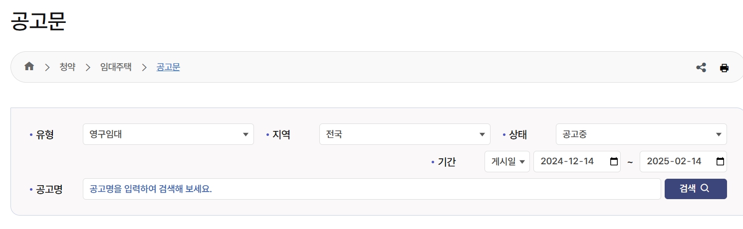 1️⃣ LH 또는 SH 홈페이지에서 모집 공고 확인