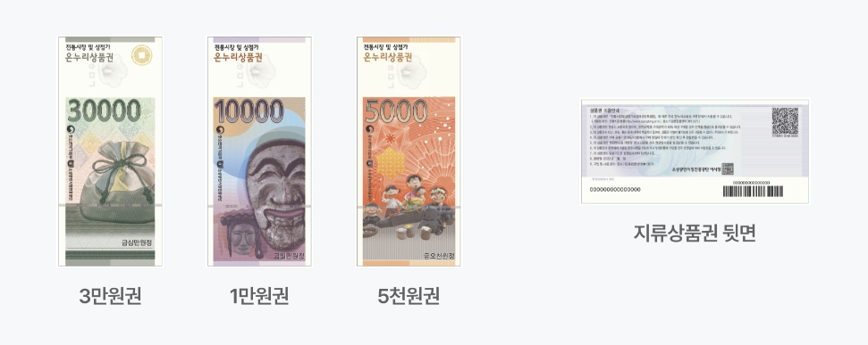 종이 형태로 발행되며, 사용자가 직접 구매 후 전통시장 가맹점에서 사용할 수 있습니다.