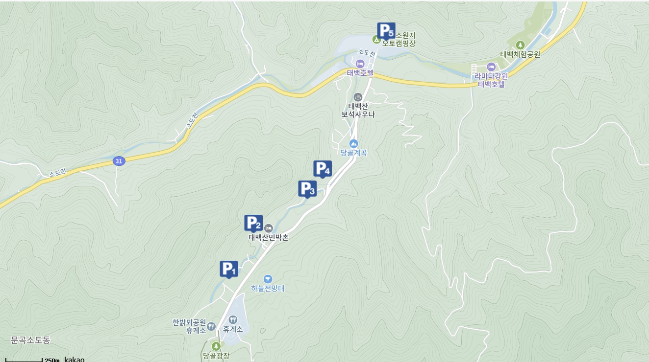 이 외에도 황지연못 공영주차장에 무료 주차가 가능합니다.