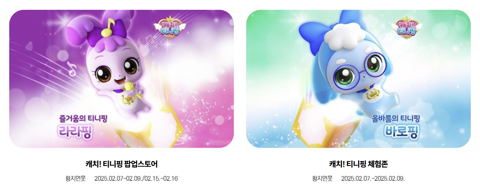 내용: 티니핑 캐릭터 관련 다양한 상품을 판매하는 팝업스토어로, 팬들에게 특별한 기회를 제공합니다.