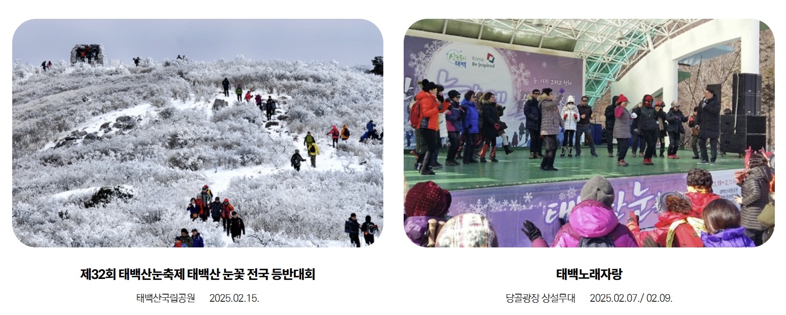 자세한 일정과 프로그램 내용은 태백산 눈축제 공식 홈페이지에서 확인하실 수 있습니다.