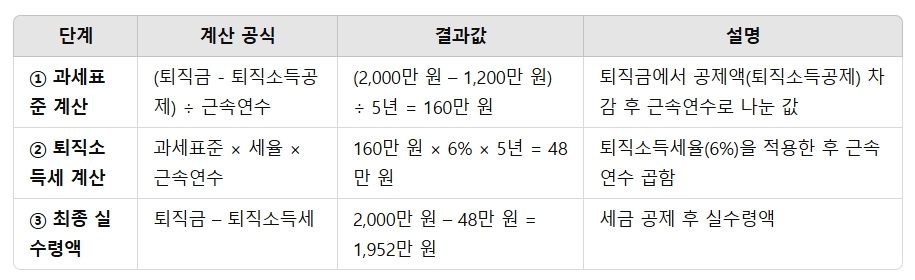 💡 예제: 5년 근속, 퇴직금 2,000만 원